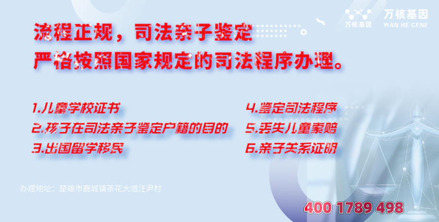 主要服务于:楚雄市、禄丰市、双柏县、牟定县、南华县、姚安县、大姚县、永仁县、元谋县、武定县等周边城市,可咨范围:司法亲子鉴定、产前亲子鉴定、个人亲子鉴定、移民亲子鉴定、入户亲子鉴定、中考报告亲子鉴定、高考亲子鉴定等。